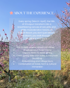 If you’re looking for a more relaxed way to soak in the rhododendron season with a guided hike, this spring join the special experience hosted by Prakriti Resort and Organic Farm.